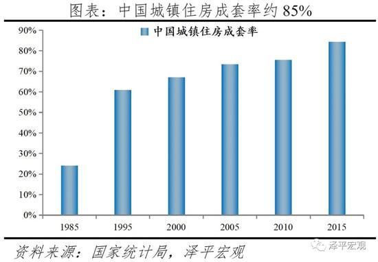 三是中国现有城镇住房成套率仅85%,并且尚有20%的家庭居住在条件较差的平房,存在住房更新需求。一是中国城镇住房成套率仅85%左右,还有约15%的住宅需要更新。1985年中国城镇住房成套率仅为24.1%,1995年居住在成套住宅的家庭户比例快速提升至61%,2010年、2015年分别达75.6%、84.3%。其中,根据2015年小普查数据,城市、镇家庭户中同时拥有厨房和厕所的比例分别为89.3%、76.8%。二是中国城镇尚有约20%的平房需要更新。随着拆迁新建,中国城镇家庭户中居住在平房比例从1995年的46.1%降至2015年的20.6%,其中城市、建制镇分别为10.2%、36.1%。