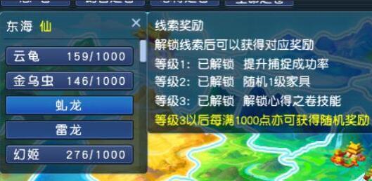 上面的这位玩家进行的就是物种探索,这种玩法通过物种探索是可以解锁各种召唤兽的物种线索的,上面的这位玩家已经解锁了虬龙和雷龙的物种线索,而解锁的物种线索后能够提升对该召唤兽的捕捉成功几率,还会随机的获得一个一级的家具,解锁到三级就可以解锁心得之卷的技能,另外就是当线索达到1000点的时候还可以获得额外的物品奖励,小编就看到有人获得了定魂珠等物品。