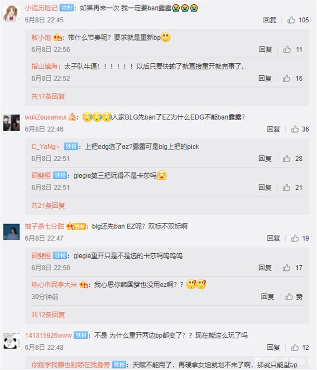 因为游戏中出现了bug,无法维持原本的bp了,两支战队都对自己的阵容作出了调整。然而,edg的bp引发许多人的不满,他们吐槽说:blg好不容易找到了取胜的秘诀璐璐,edg却故意将其ban掉,赢了也是胜之不武,还有的弹幕刷屏直接开喷。