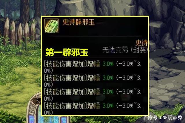 DNF第一辟邪玉,顾名思义,是指“四词条都是4%技能攻击力增加”的史诗辟邪玉,一块辟邪玉可带来12%的技能攻击力提升,整个国服所有的大区,有且仅有2块。 #地下城与勇士#