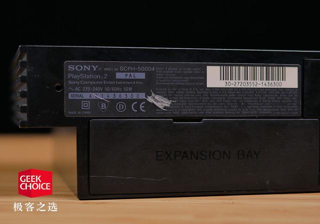 PS2 的整个更新轨迹跟 PS4 有些类似,在后期都推出了「slim」版本,只不过「PS2 slim」在名字上没有特别标注,仅仅是型号数字上有所区分,极客之选淘到的这款 PS2 型号为——SCPH-50004。按说这个型号并不是一个热销的版本,它的前两位数字代表了机器的版本(小改款),最后一位数字则是代表了销售区域。当时比较受欢迎的是美版和日版的机器,但其他地区版本的机器也有好处,那就是输入电压是 200-240V,在中国可以直接使用,如果你买的是美版或者日版,还需要一个笨重的逆变器。