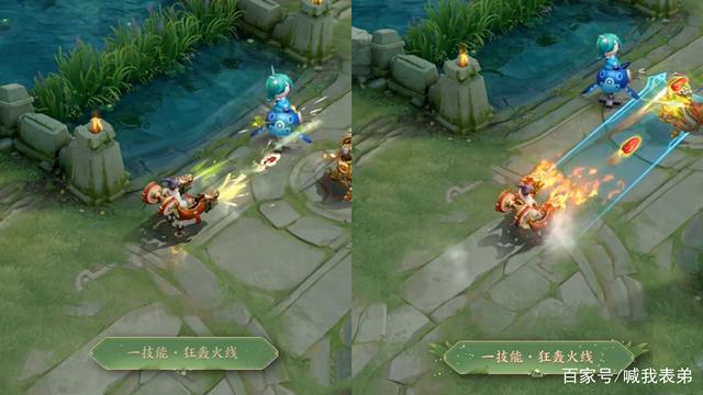 皮肤一技能特效从公布出来的内容来看,普通形态下就是单纯地释放出去蜕了皮的粽子,而被动叠满之后,释放出去的粽子在馅料上面会发生变化,甚至说不好听一点,粽子都直接变成了“烧红的玉米”。