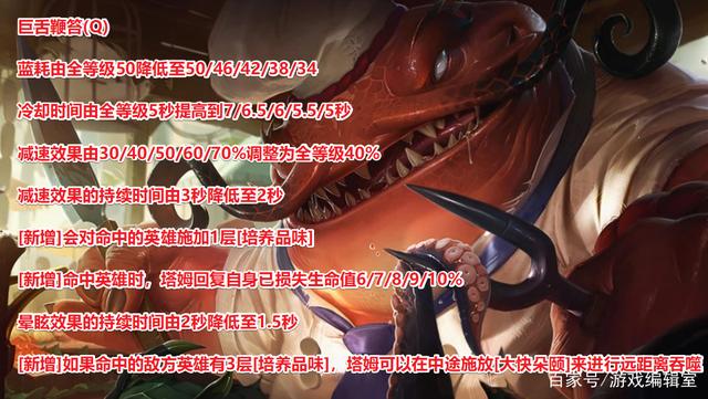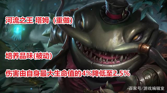 这样的改动对于塔姆来说,影响无疑是非常大的,辅助玩法估计会直接“废了”,但上单玩法也许会成为主流。