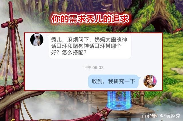 你的需求就是秀儿的追求!如果你在装备搭配、附魔选择等方面存在任何疑问,都可以私信或者评论留言,秀儿为你完美解答。一位可爱的勇士又给秀儿留言了,“奶妈大幽魂神话耳环和赌狗神话耳环,应该如何选择?装备如何搭配?” #地下城与勇士#