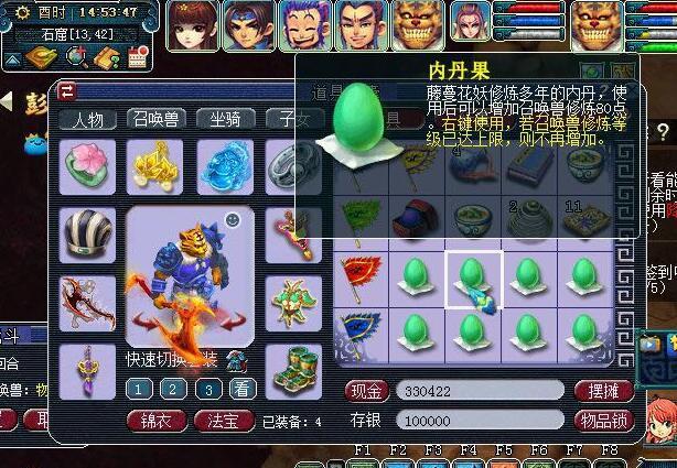 上面的这位玩家的道具栏中获得的道具就是内丹果,内丹果的作用是用来增加召唤兽修炼经验的,而内丹果的获得方式也比较特殊,玩家花钱是没办法购买的,内丹果是玩家在封妖后续任务中获得的,所以小编感觉对于那些高等级的五开玩家来说,自己的召唤兽修炼在后期都是可以慢慢点满,只要他们一直在封妖,通过这些封妖后续任务的奖励也可以将自己的召唤兽修炼等级养上去。
