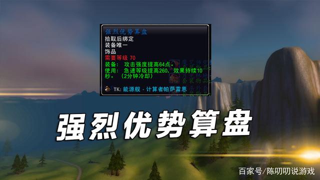 第三款是强烈优势算盘,拥有稳定攻强64点及使用260点急速提升。是物理职业不错的爆发饰品,出自能源舰的尾王boss,普通和英雄难度都会掉落。虽然没有前两款饰品强势,但对于某些职业来说这种使用爆发的也是非常值得拥有的。