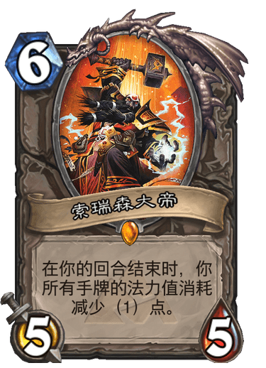 显而易见这也是一张节奏卡,也是万金油卡牌的基本属性之一,我已经数不清有多少卡组的combo是需要靠索瑞森减费才能完成的,但是除开快攻卡组以外,其他的任何卡组带一张索瑞森都不亏,虽然索瑞森本身没有嘲讽,但是精神上胜过带嘲讽。(没有索瑞森能活过两个回合)
