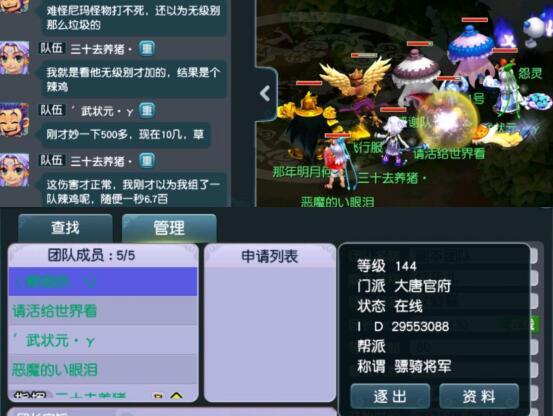 上面是一个109级的队伍正在刷副本任务,但是在这个亿109级的队伍中却存在着一个144级的大唐官府的角色,但是这位大唐官府的角色在任务中造成的伤害却特别低,后来才发现是队长看错了,原因是队长看着这位144级的大唐官府的角色带着四法青云就将它当成了无级别大佬,没有注意角色的等级,所以才会加144级的角色加进去的,109级的队伍中出现了一个144级的角色,这样的战斗就会变得比较困难。