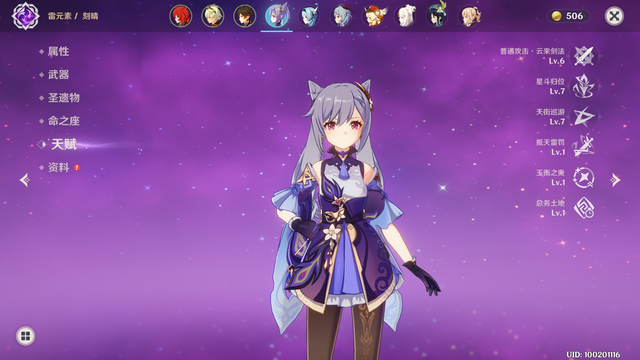 由于总所周知的原因,我的刻晴练度极低,目前仅0命80级,天赋也只有6/7/7,武器用的还是80级满精匣里日月,虽然很是上不了台面,但也只能这样了,本来就是仓管,暂时是不会考虑投资源养的。