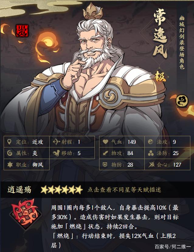 不过客观说,常逸风的暴击率却是真心不错,甚至排到游戏中的第一也不为过,他不仅拥有排名御风职业第二的高会心属性,外加天赋的支撑(由于是极品英灵,常逸风很容易提升到高星级,6星时暴击率最高提升30%)和【闪击】(暴击率最高提升15%)+【狠戾狂掠】(暴击率提升20%)+【封魂缚掠】(暴击率提高20%),如果你经常用到常逸风,你可能会有种刀刀都能暴击的错觉......