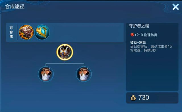 我们来看极寒风暴的合成小件,雪山护盾与守护者之铠,雪山护盾只能合成极寒风暴,而守护者之铠可以合成极寒风暴与不祥征兆。但是这两件小件装备,在这个版本是完全没有性价比的。