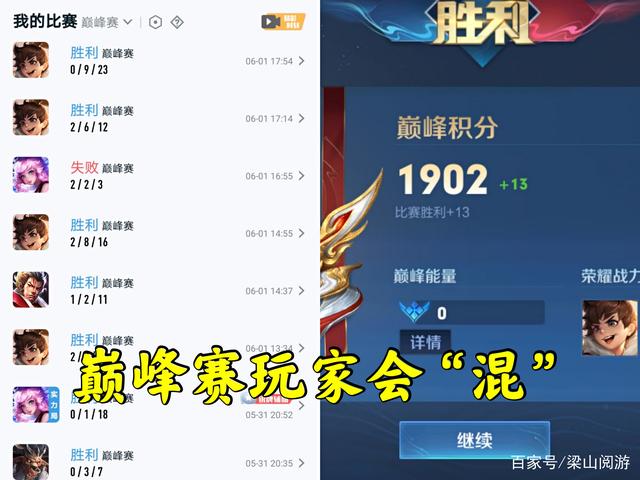 这个混是指补位的意思。这是一个让人很疑惑的原因,但却有事实证明,如图,某位排位赛上只能打到25星的玩家,却靠一手辅助混上了巅峰赛1902分,着实令人刮目相看。其实正印证了辅助在高端局的重要性,肯补位,会补位是巅峰赛的一大特点,而排位赛中大家都是争相抢C位,要他补位跟要他命似的。