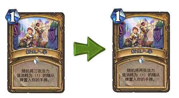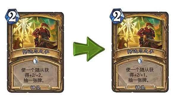 另外考虑到圣骑士的补丁也已经上线,分别是新生入学(衍生牌从3张下调的2张)阿达尔之手(buff效果从+2/+2变成+2/+1)