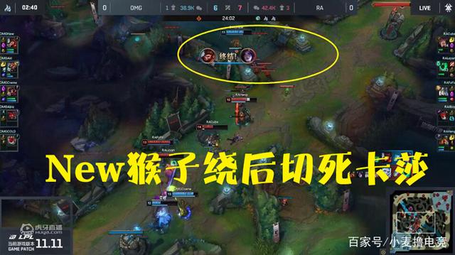 你没看错,就是New宝!尽管OMG两局比赛都遭到了RA的碾压,但是New的发挥还是可圈可点的。第一局的猴子在被RA频繁针对的情况下,在前期依然打出3-0的完美数据。就在RA中期准备起势的时候,又是New的猴子直接绕后秒掉了iBoy的卡莎,延缓了RA打大龙的进程。