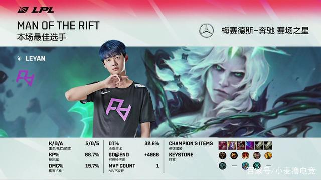 在和OMG的首局比赛中,乐言直接锁下佛耶戈,不论是反野还是Gank都做得非常到位,反观Aki这边则遭到了压制。乐言和FoFo的中野联动也成为RA滚起雪球的关键,尤其是对上路的针对,一度令New宝在自闭草丛罚站。最终乐言使用佛耶戈打出了5-0-5的完美数据,收获了夏季赛首个MVP,对位经济差更是达到了5k左右!
