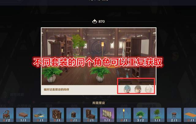 这个新内容就是家园的角色入驻系统,玩家们只要组合出角色喜欢的套装,就能获得角色赠送的20原石以及摩拉和材料,关键的是同一个角色在不同的套装中会重复给你原石,这也意味着完成所有的套装将可以获得大量的原石。