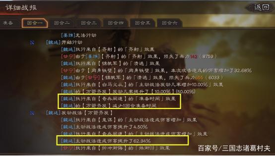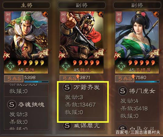 4:魏延自带战法奇兵间道天生适配准备类型主动战法!。万箭齐发高额的伤害,配合魏延自身30%增伤,外加75%跳过准备阶段,输出绝对爆炸!