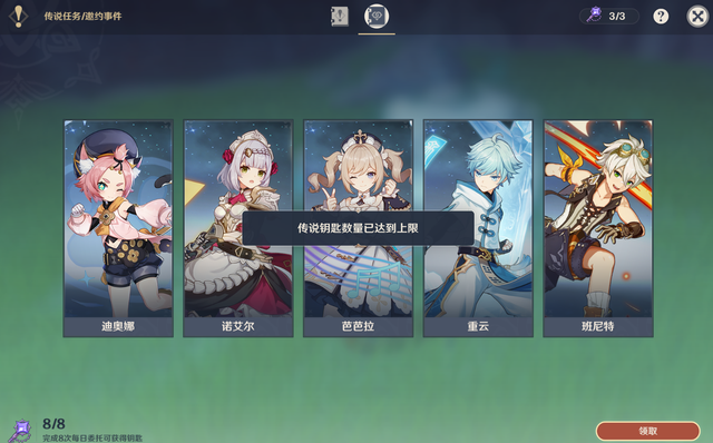 对于“传说任务”钥匙的领取,完成两天日常任务能获得1把,但最多只能存放3把。这个问题一直都困扰着很多有强迫症的玩家,因为这个玩意儿时不时的会出现消息提示,就好像在说“兄嘚,我的数量满了哟,你来看一下,但是不能领取哟~!”也正是这个原因,有玩家就想出了这样的方法,毕竟也是传说任务的钥匙,地位也够高,溢出的能不能给换点游戏资源?比如摩拉和经验书之类,如果可以的话,3把钥匙兑换1个脆弱树脂也是极好的。