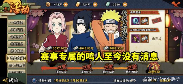 说完了忍者重做,我又想到了之前投票选出来的赛事专属忍者,好像最后的冠军是鸣人?但现在好像也完全没有任何动静了。
