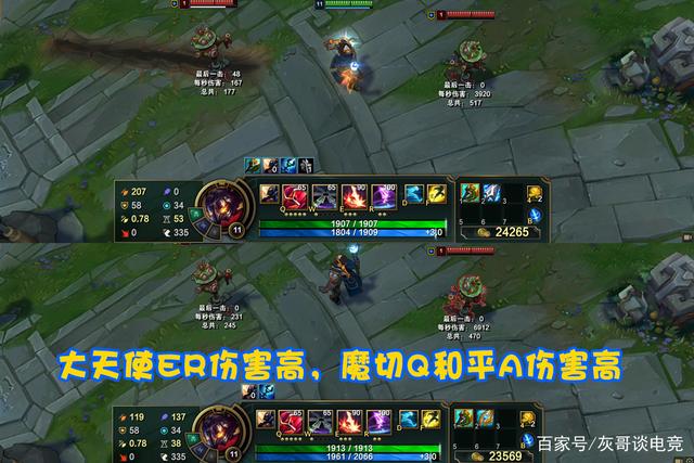 但神圣分离者毕竟是一件战士装备,它不像卢登、面具那样可以提供蓝量,维克托前期还是比较缺蓝的,而最好的应对方法就是法力流系带、腐败药水加女神之泪,那么问题又来了,女神之泪在叠满之后是合魔切好还是大天使好呢?我们不妨来做一个对比。