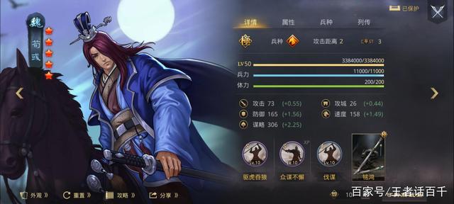 中军荀彧则可以选择携带始计和极火佐攻,始计不仅可以保证荀彧免受控制,而且还能大幅度提升夏侯渊的爆发力。同样,极火佐攻在对敌军造成伤害的同时,也会让敌军所受伤害大幅度提高。在这种双重伤害提升之下,夏侯渊往往只需要一发一骑当千就能对敌军打出超强伤害。另外,荀彧自带战法的禁疗也能让大魏骑成为肉步的绝佳克星。