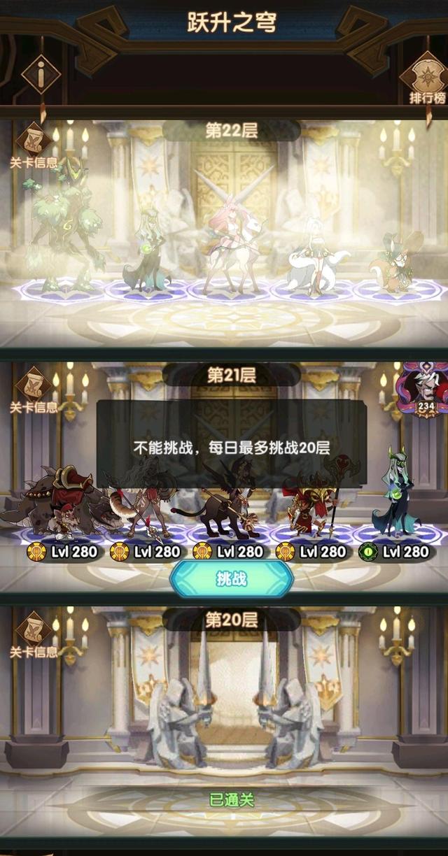 和四族塔不一样的是,玩家挑战半神塔一天最多可以挑战20层,但是第一层的NPC就已经是260级的等级,而第20层对方英雄的等级直接达到了280级。差不多是四族塔100+层的难度了,很多零氪玩家真的不知道能打上多少层。