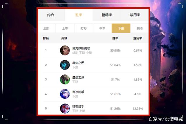 目前乌鸦、滑板鞋、老鼠、寒冰和薇恩是下路胜率最高的英雄,而乌鸦不是ADC自然就不在考虑之内,直接去掉即可。