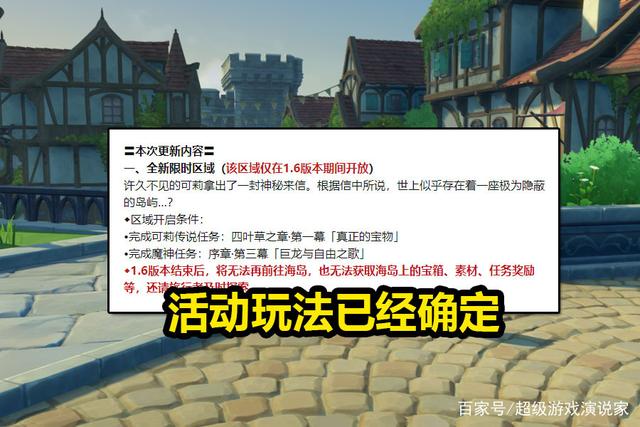 相关的活动玩法,也确定了下来。和内鬼玩家的爆料相差无几,1.6版本中的夏日海岛,属于限时开放的地图区域。如果真是这样的话,那万叶的材料获取,就会变成一个问题。根据可靠的消息,会有新的材料上线。