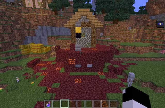 这可能是对这个村庄中最诡异的房间了,不要问什么,以红色的下界传送为平台,这样的建筑仿佛就是房子被某个神秘的祭台所占据,就如同下界的力量所侵蚀。所以在村民的家的墙壁上是可以发现黑曜石以及那一个金块的。