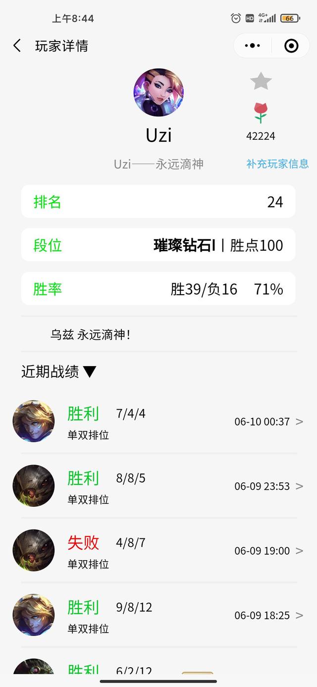 Uzi单排AD以76%的胜率冲上峡谷之巅24名