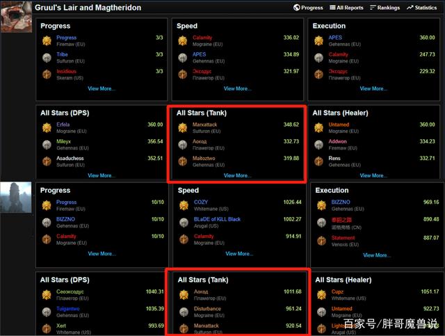 在WCL的TBC版本数据中可以非常清楚的看到,无论是格鲁尔和玛瑟里顿这种25人大型团本,还是卡拉赞这种10人的小型团本,在坦克职业一栏中排名前三的都是防战。