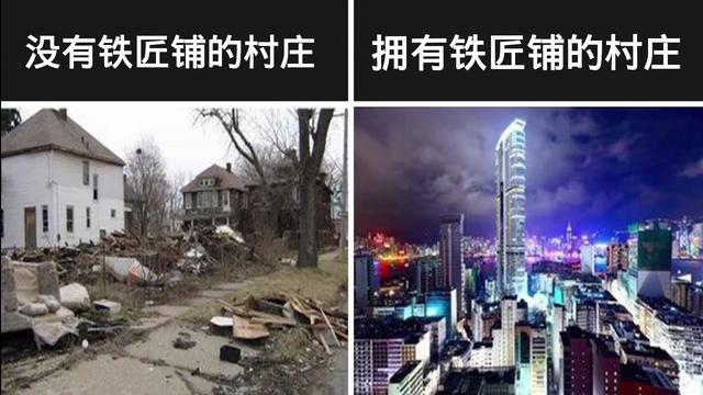村庄在我们在游戏中经常生活的地方,在看到这张梗图你会觉得很真实。拥有铁匠铺的村庄往往很大,属于比较豪华的一种。没有铁匠铺的村庄往往是比较小的,你发现村庄中的这个细节了吗?