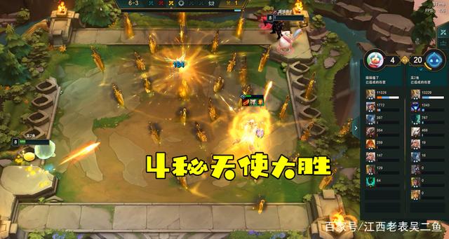正常思路,相信大家都会凑6骑天使,但这一局同行多,决赛圈必然是天使内战。正如大家所知,天使造成的是混合伤害,其中魔法伤害往往占三分之一,物理伤害可以忽略不计,真实伤害过半。所以,理论上,4秘术天使应该会略占优势。