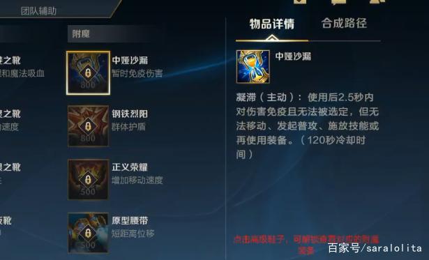 中娅沙漏:大家最熟悉的金身效果,可以在2.5秒内免疫伤害并且无法选定,不过你也不能进行其他的操作了。这件装备一般是用来规避致命伤害,尤其是对抗刺客英雄,比如劫和伊芙琳,用得好可以躲掉对手最多的爆发。PC版本只能法师英雄出,LOL手游里所有英雄都能出,这是莫大的加强。