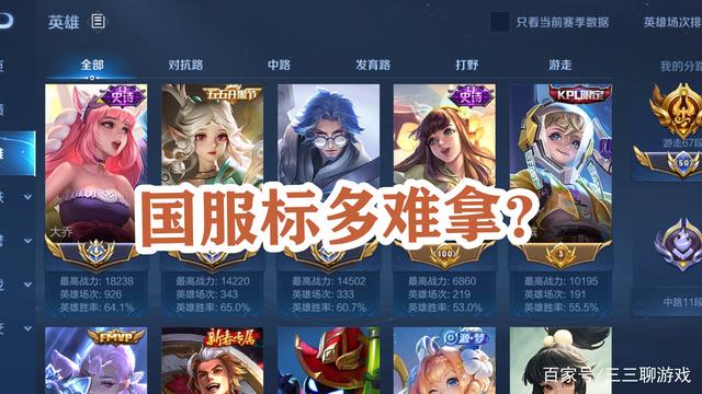 而且如果你一直用一个英雄的话,场次变多了以后,胜率也会慢慢下降,这个时候赢一局游戏加的战力会更少,所以国服标并不是那么好拿的。