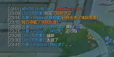 随后就是不停的下路大乱斗了,Imp和Uzi这两个人任何一个单拿出来都是要在排位中被无限照顾的,现在这两个人出现在了一起,下路有所热闹可想而知。Uzi这边的上野两个人不停的往下路跑,使出浑身解数保证下路的发育,同时也让对面游戏体验极差,慢慢的来几波就崩盘了。23分钟的时候Imp杀了13个,Imp问Uzi他的EZ怎么样,Uzi:猛啊,太狠了。