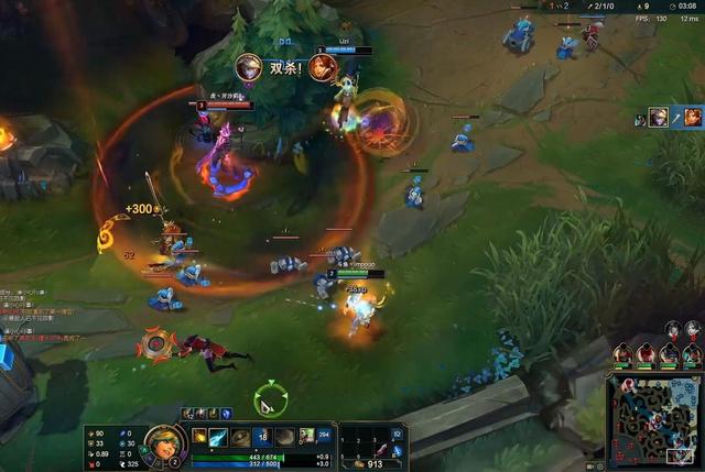 不过开始对线后局面再次反转,虽然对面轮子妈拿到了一血,但英雄组合的对线能力和选手的对线能力都不是一个级别的,再加上轮子妈回去补的是女神之泪,所以这个一血拿了跟没拿一样。两个人在3分钟的时候被Uzi和Imp找到机会,被一路追到自家塔下击杀,Imp拿到两个人头直接起飞。