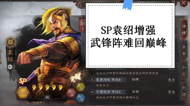 SP袁绍当副将,很可能4回合就没箭了,遇到普通敌人是好事,遇到减伤高的敌人会吃亏,不如以前慢慢射箭。