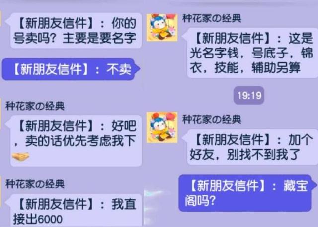 通过聊天知道对方之所以购买这个角色就是为了这一个角色的角色昵称,因为这个角色的角色昵称就是他的前女友,所以上面这位想要买角色的玩家应该是梦幻中的痴情种,如果各位在游戏内真的碰到了这样的事情,小编建议各位玩家暂且相信对方,因为通过藏宝阁交易是没办法骗人的的,度过了14天的登记期之后再问对方要不要购买,如果对方还是执意要购买,就直接指定rd进行交易,届时就算对方不买也可以将自己的角色重新下架,那个时候只不过是浪费了点时间罢了,如果对方真的购买自己的这个角色,就可以多卖6000块呢。