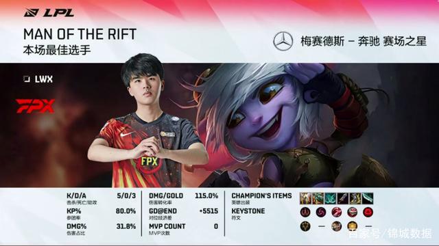 不过也有一个好消息,就是新赛季的MVP界面,实话实说设计得比上赛季要好。唯一的一个小问题可能就是Lwx人物太小了,显得这场比赛是小炮玩林伟翔拿下来MVP。