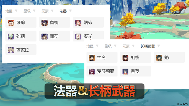 要说法器角色的特点就是在实战中能够打持续性的元素伤害,能够持续性的打出反应伤害,或者说普攻也能对敌人施加元素印记。当然,这类武器也有远程输出的性质,相对于弓箭来说操作相对简单。但是可莉除外,其他几位法师都有锁敌机制,使用起来还是比较顺手。