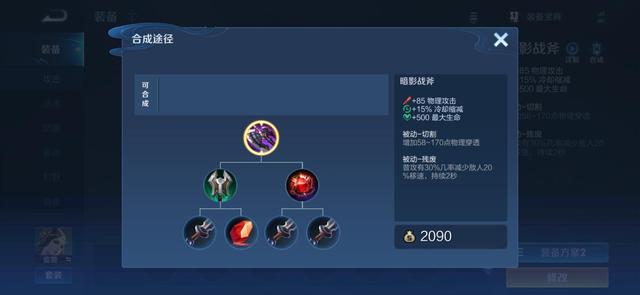合成“炮狙流”虞姬的小件搭配后,首出大件无尽战刃,只有它,才能让虞姬的普攻伤害发生质的飞跃。出完无尽后,把陨星合成暗影战斧,因为这个时候,虞姬的等级已经崛起,虞姬超过12级后,能把暗影的作用发挥到极致。合成暗影后,把狂暴双刃合成影刃,然后出破晓和吸血刀。