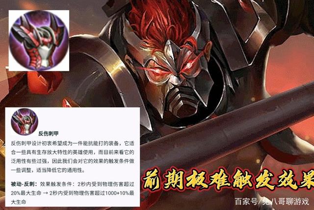 而反伤刺甲的改变就很大了,对于装备而言,所达到的效果其实并没有多少影响,但是对于急需这件装备的坦克英雄而言,这件装备的合成顺序就会延后了。通过调整到内容就可以明显地看到,想要触发该装备的被动效果,基础伤害一定要很高,那么在前期这样的条件就很难达成。不过从另一个角度来说,对于射手英雄而言就是一个比较坏的消息,毕竟射手英雄的伤害是最容易触发反伤刺甲的效果的。