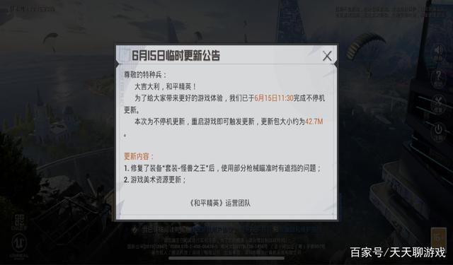 2.《天天聊游戏_吃鸡6.15更新42M 新军需倒计时3天玩家:光子要开大了》仅供读者参考,本网站未对该内容进行证实,对其原创性、真实性、完整性、及时性不作任何保证。