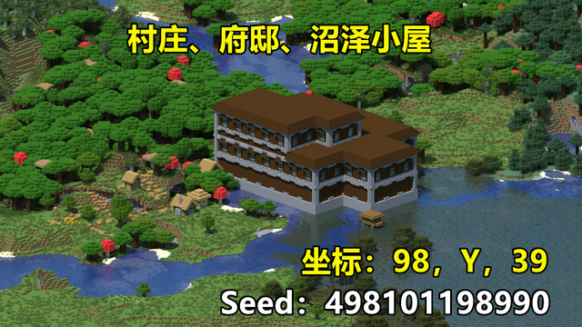 村庄和府邸在一起本就比较有趣了,生成也是比较少见的,那如果再加上一个沼泽小屋,那就更加少见了,而这个种子就是如此少见。