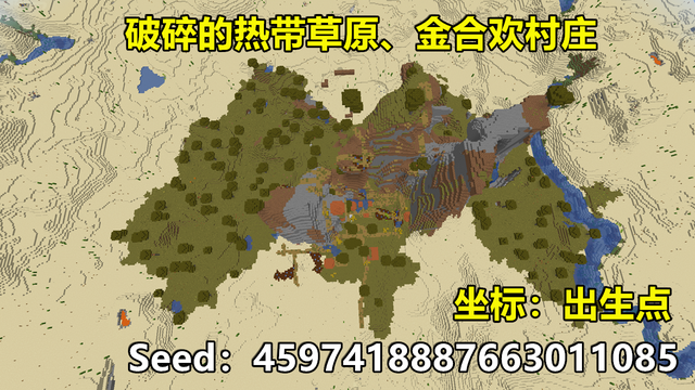 在破碎的热带草原群系,还有一座金合欢村庄,可以给玩家的生存提供不少便利。当然了,附近的沙漠不远处也有村庄和沙漠神殿,这些就交给大家去探索了。