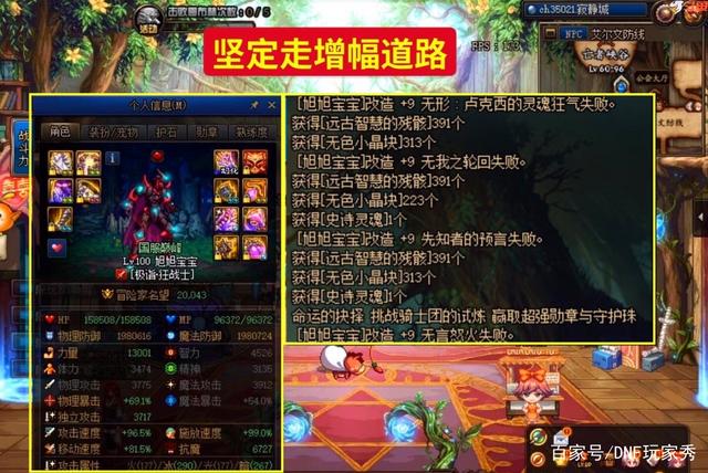 旭旭宝宝全身增幅17成功后,如日中天,无人能及,后续有增幅改造两开花,打造了7件改8装备,红眼穿5件改8和增幅17,打桩伤害高达8.8W亿,比全身增幅17穿1件改造的伤害,高了近2万亿,这让旭旭宝宝很愤怒,然后怒毁4件改造,坚定的走增幅之路。