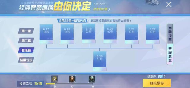最大不同在于这些皮肤都是游戏中最经典的游戏皮肤,不管是哪一 款皮肤,都是让玩家们印象深刻的经典套装,这也导致这款活动的热度非常高!而现在进行的则是返场活动的投票阶段,将从8套系列皮肤中选出3套人气最高的游戏皮肤!不过投票的规则有些特殊,是将8套系列皮肤分成4组,然后两两进行投票,最后再进行复活赛,选出最后的游戏皮肤,虽然有一些规则有一点点复杂,但是也挡不住玩家们的热情!