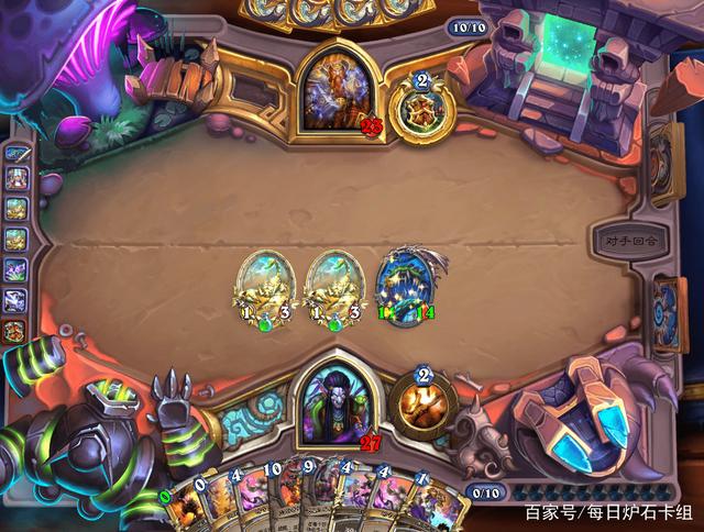 我们前期为数不过的随从是剧毒魔蝎和新卡安瑟教士。由于我们奶量比较多,也很容易触发安瑟教士的过牌。剧毒魔蝎的实用性已经讲过,而且剧毒魔蝎常常会给高质量解场牌,进一步保证魔蝎的生存能力。如果手牌中已经有解场卡,那就考虑拿一些BUFF牌,把剧毒魔蝎给养成大哥,在中期开始压制对手的血线。中期没有随从的情况下,也能使用一张亡者复生继续拿回剧毒魔蝎打资源。场面上3、4只蝎子,对手不禁怀疑自己是不是捅了蝎子窝。
