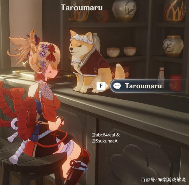 非人型NPC再添一员,太郎丸,能够听得懂你说话但是只会用汪汪汪回应你的可爱狗子。这放荡不羁蔑视一切的表情不知道是学谁的?不过它的背后有个存了15w摩拉的箱子,谢谢你狗子。